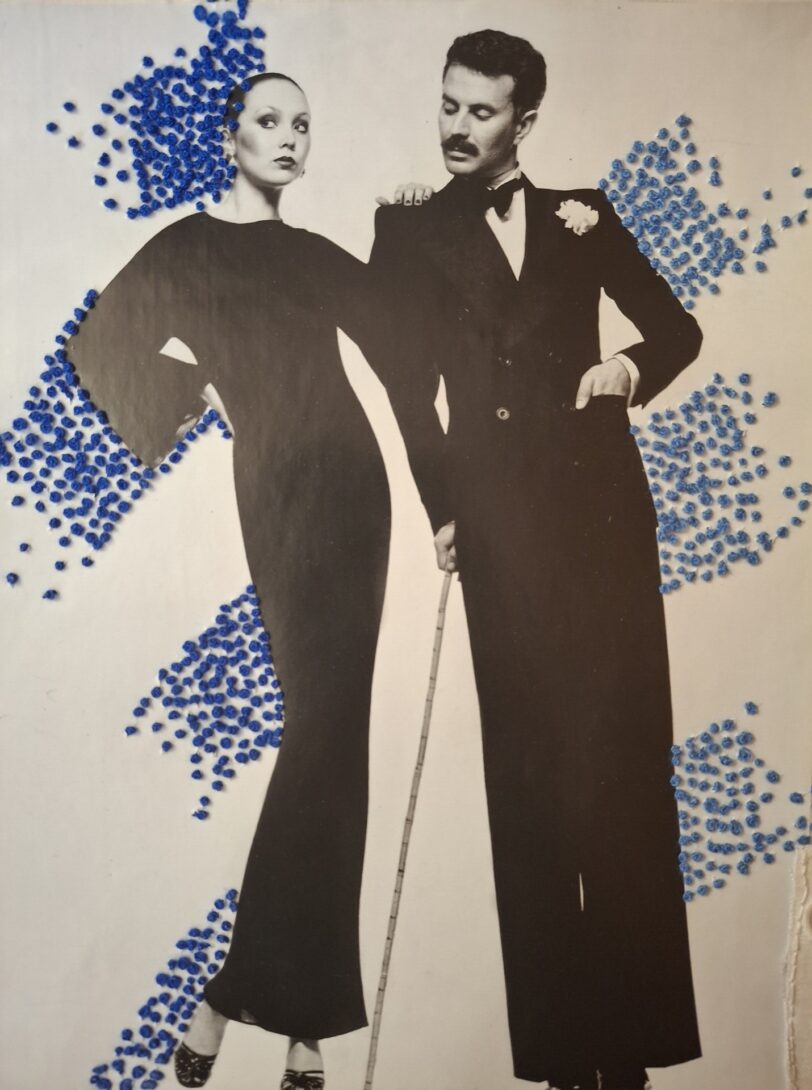 Die 1920iger in „Blau“ …Partytime, intensiv blauer Knötchenstich….und der 1. Mann im Shop..oder? 20x25cm