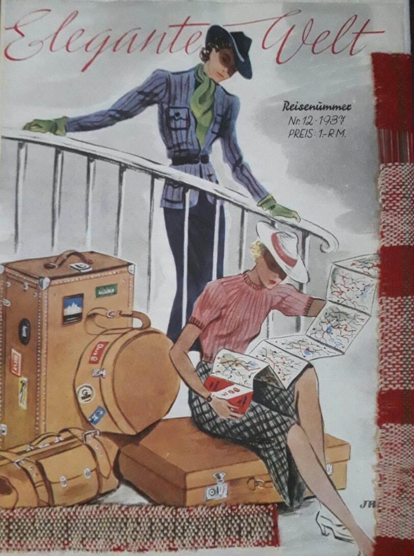 Original Titelblatt der „Elegante Welt“ 1937, die Reiseausgabe. Auf Papier gewebt in beige und rot.